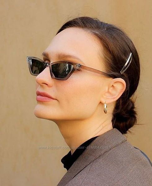 Яркие и слегка эксцентричные очки из поликарбоната... с защитой от солнца 100%... ширина очков 15.5 см... размер дымчатой линзы из поликарбоната 5.5 на 3 см... высота очков 3.6 см... ширина переносицы 2 см... дужки 14 см... форма оправы - узкий "кошачий глаз" или "лисичка"... цвета матовые и полупрозрачные на выбор...в наличии коричневые дымчатые и серые зеркальные очки.