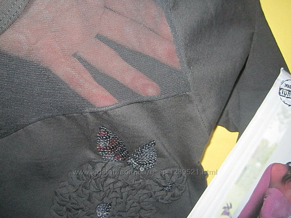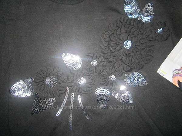 Новый качественный хлопковый реглан, верх до цветов идёт сеточка,узор паетками, р. М-Л, Турция.ПОГ 40 см