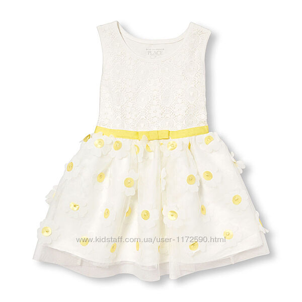 Новое очень красивое платье дорогого американского бренда. По всему платью нашиты ромашки. Размер - на 4 года. Есть еще на 2 и 3 года. На 5 и 6 лет - другой фасон (трапеция).На 18 мес - ПРОДАНО