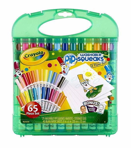 Только оригинальный товар!Фломастеры Crayola Pip Squeaks 25 шт и бумага в удобном кейсе.