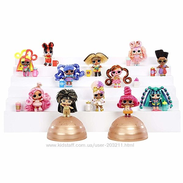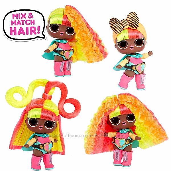 Распакуйте 15 сюрпризов, в том числе смешайте и подберите волосы! Каждая кукла включает в себя парики «смешай и подбирай», чтобы создать множество нестандартных причесок.