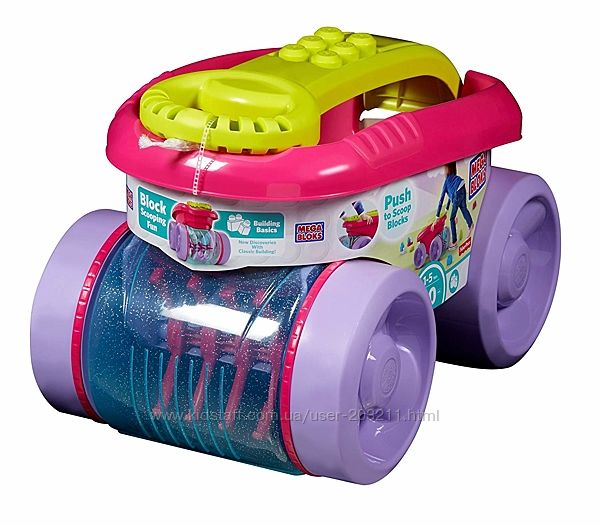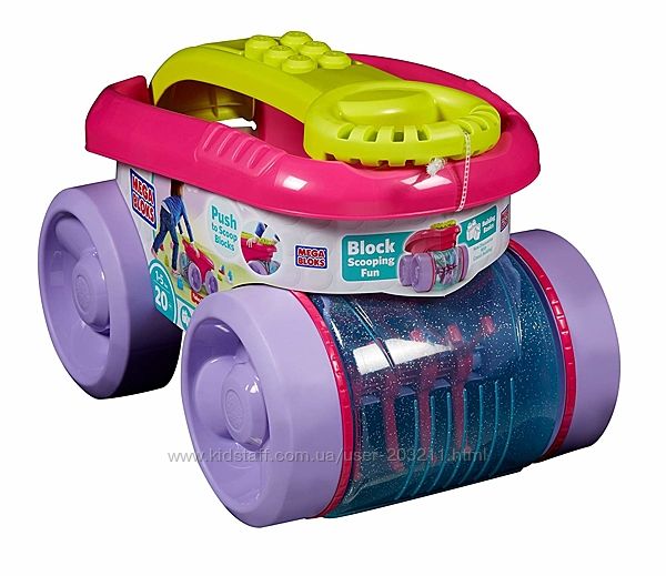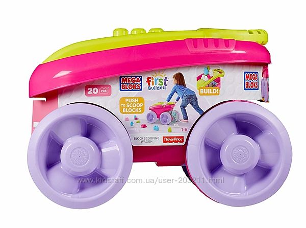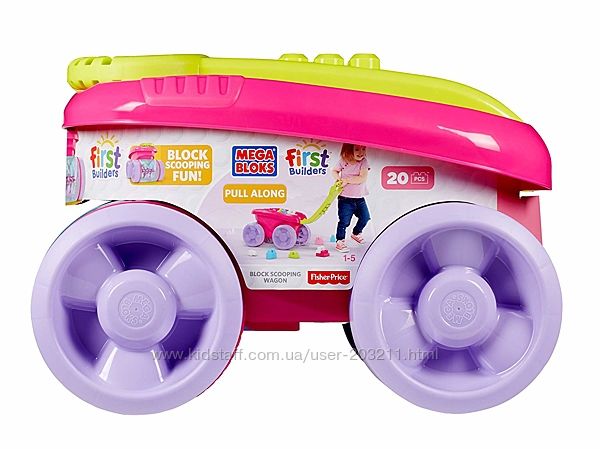 Только оригинальный товар!Конструктор тележка MEGA Bloks Scooping Wagon Собираем кубики Мега Блокс розовая.