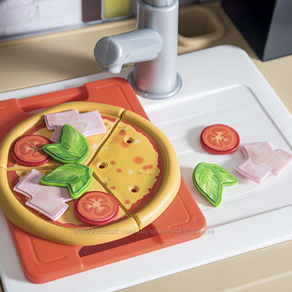2 отдельных пространства, представляющие собой кухонную зону и секцию обслуживания столов, позволят вашим детям быть шеф-поваром и потребителем.