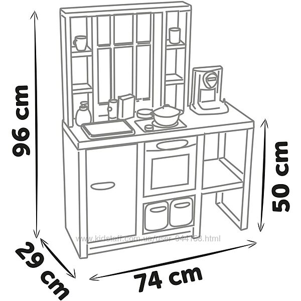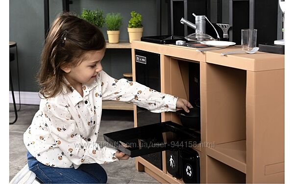 Игровая кухня предлагает большую игровую зону, чтобы несколько детей могли играть вместе, но она не занимает слишком много места благодаря своим одновременно компактным размерам.
