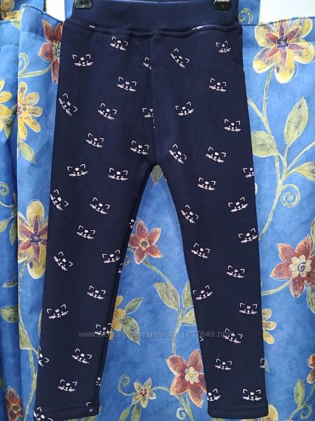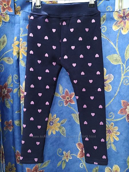 Подробное описание: Теплі лосинки на флісі для дівчинки з метеликами, сердечками та горошками