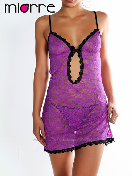 Подробное описание: Комплект ночнушка с кружевом, трусики-стринги и подарок сюрприз в заказ