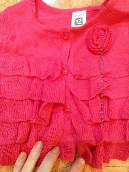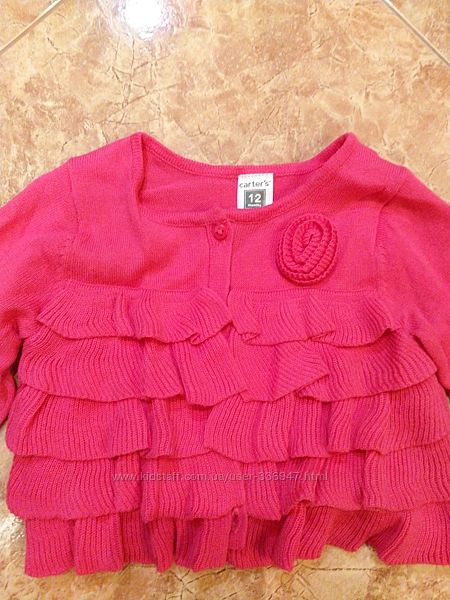 Дуже красива кофта болєро яскраво рожева з рюшами і трояндою Carters 12M. В чудовому стані,одягали один раз.Заміри за запитом.