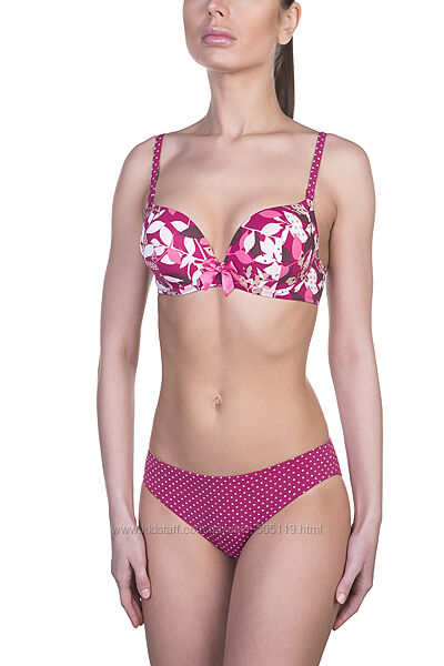 Комплектик білизни із ніжної мікрофібри. Досить зручний та комфортний.Бюст із формованою поролоновою чашкою та гелевим пуш-ап. Бретелі зйомні.