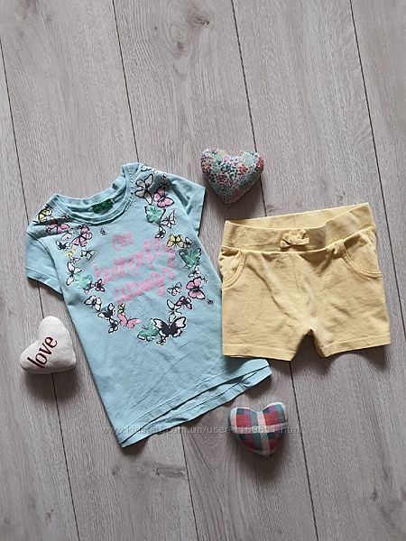 1)Комплект 3-4 года, рост 104 смФутболка F&F длина 39(42) см, ширина 30 см
