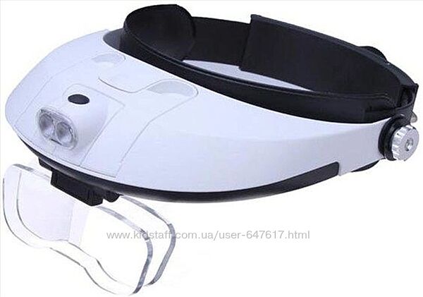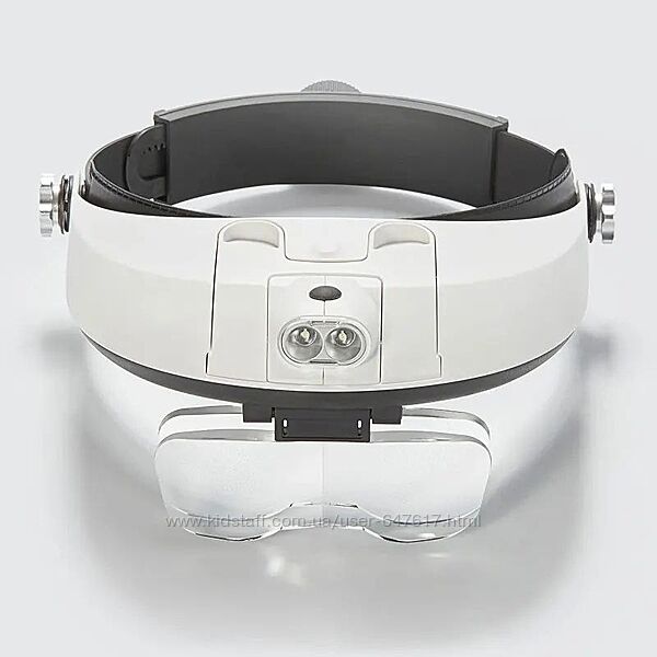 Очки бинокулярные со сменными увеличительными стеклами и подсветкой Mg81001-gБинокулярная лупа 81001-G имеет светодиодную (LED) подсветку на 2 светодиода, которая светит белым светом. Подсветка регулируется в нужном положении, позволяя направить свет на объект.