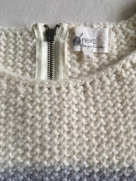 Свитер джемпер Next размер L. Состав: 70% акрил, 30% шерсть. Теплый и мягкий. Сзади застежка молния. Замеры: ширина под рукавами 50 см, длина спинки 57 см, длина рукава от горловины 71 см.Состояние идеальное без нюансов. Оплата 100% на карту. Пересылаю Новой почтой за счет покупателя. Возврат не предусмотрен.
