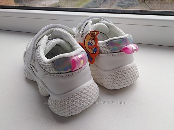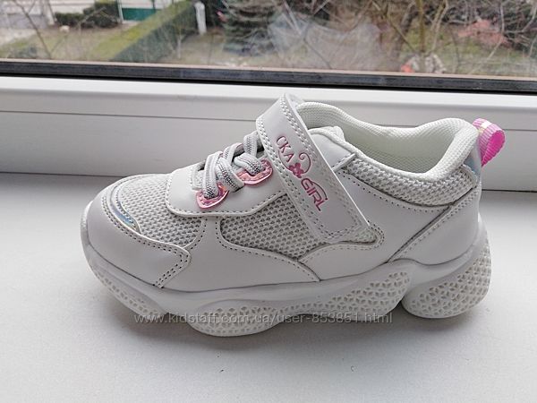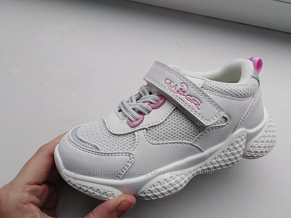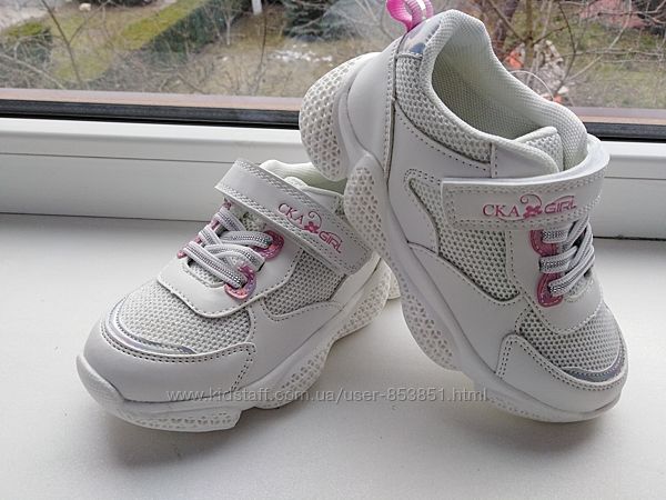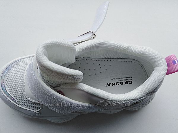 Кросівки для дівчаток Сказка . Зовні замінник шкіри+сіточка. В середині шкіра+шкіряна устілка із сюпінатором. Спереду резиночка і липучка.Ціна-500грн