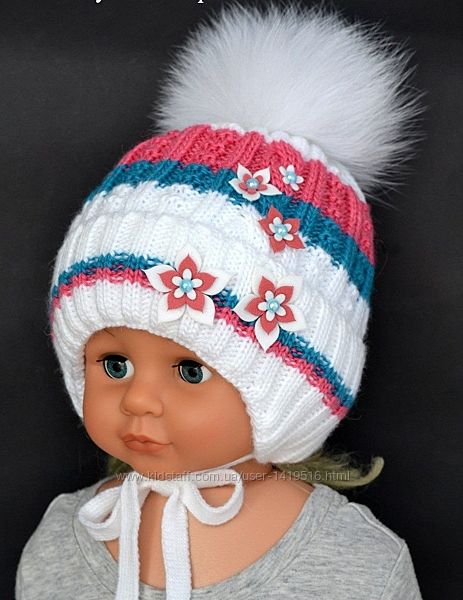 Распродажа Зимова шапка Букет для дівчинки р.48-52 Arctic п/ш, натур. мех