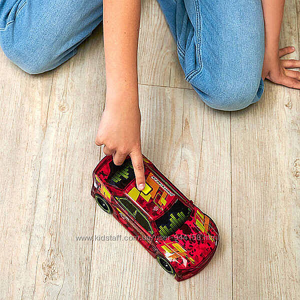 Для любителів сучасних та крутих автомобілів компанія Dickie створила тюнинговану автівку "Швидкісний біт". Машина виготовлена з високоякісного пластику та має напівпрозорий червоний кузов, стилізована в музичній тематиці. Лише натисни кнопку та спостерігай, як кузов починає підсвічуватиметься яскравим кольором. А завдяки фрикційному механізму руху коліс ти завжди будеш попереду своїх суперників. Тепер кожен малюк зможе отримати до своєї колекції надсучасний тюнингований автомобіль.