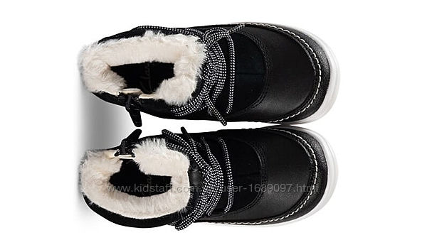 Ботиночки демисезонные, сверху украшены белым мехом, внутри тёплый текстиль. Смотрятся стильно как для мальчика, так и для девочки.