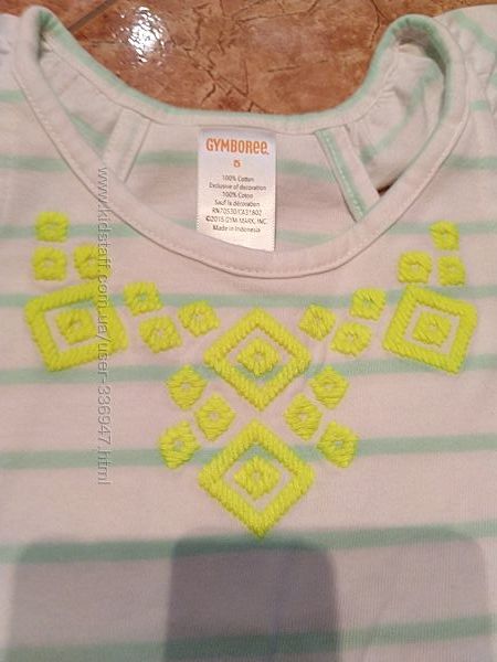 Дуже красива футболка-майка Gymboree р.5 (можна носити від 3х років). Декорована яскраво салатовою вишивкою. Одягали один раз на свято,в ідеальному стані.Є Багато одягу Gymboree,все замовляла з оф.сайту.