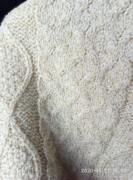 Нарядный джемпер (пуловер, кофта) фасон летучая мышь.Красивый молочный цвет с золотой люрексовой нитью.