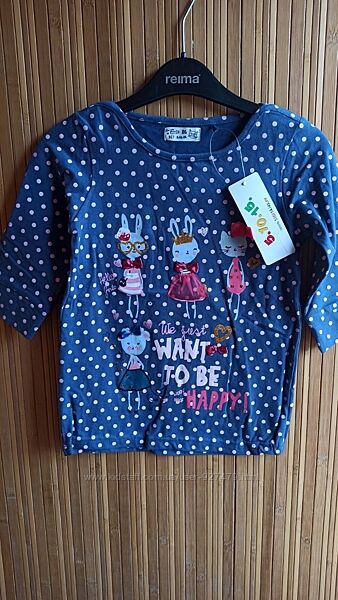 Туника-кофточка марки-5.10.15.Kids синего цвета в горошек с Зайками, Кошечкой и Мышкой.