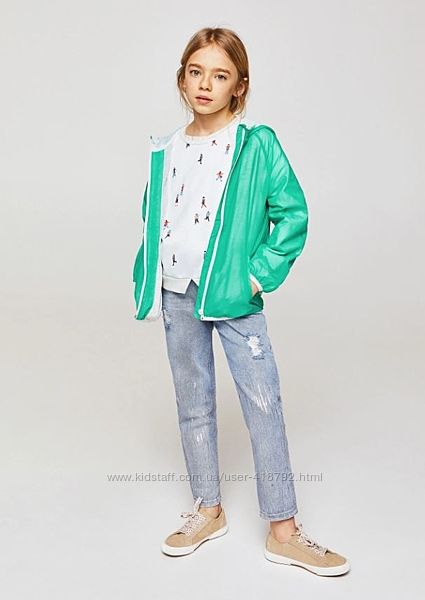 Новая, с биркой, куртка ветровка MANGO для девочки. Оригинал, из Испании.Легкая, красивая куртка, водоотталкивающая верхняя ткань. Тонкая подкладка, без утеплителя.