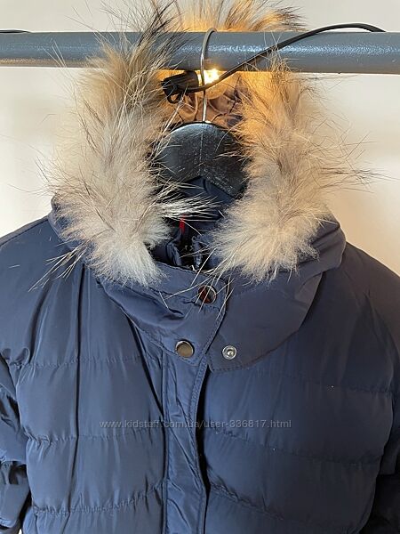 Довга куртка Adrixx - швидковисихаюча болонья, синій колір, синтепоновий утеплювач, приталений крій, блискавка та клапан, бокові кишені на кнопках, невідчіпний капюшон з хутром, трикотажні манжетиПЛ 47