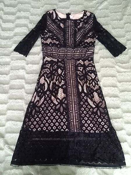 Дуже гарне кружевне плаття. Стан ідеальний, оскільки одягнене лиш двічі. Розмір s-m, є заміри на фото. Фото 7 на мені. Максимальні параметри: ОГ 86 см ОТ 70 см ОБ 96 см Важливо: рукав не тягнеться, підійде на об´єм 23 см. У мене рука 24,5 см - тисне (тому й продаю). Повернення не передбачено