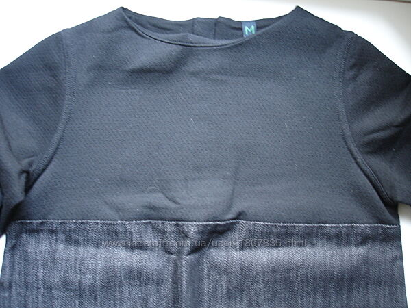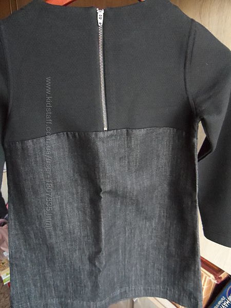 Продам Платье BENETTON, р. 130. Состояние новой вещи, одето пару раз. Можно в школу. Верх плотный полиэстер, на фото 6. От груди пришит плотный джинс черного цвета. Силуэт А образный. Сзади застегивается на замок.Замеры: