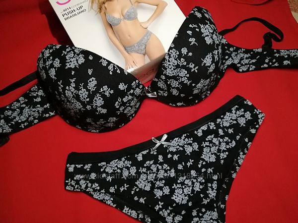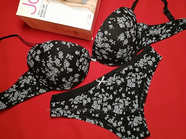 Комплект нижнего белья, бюст пуш-ап, Jadea 4014, черныйХлопковый нежный комплект женского нижнего белья, бюстгальтер пуш-ап, красивый вырез для подчеркивания декольте, регулируемые бретели, застежка - три положения - все для удобства и красоты!!! Трусики бразилианы. Комплект с нежным рисунком «мелкие цветочки». Мягкая ткань, приятная к телу.