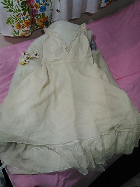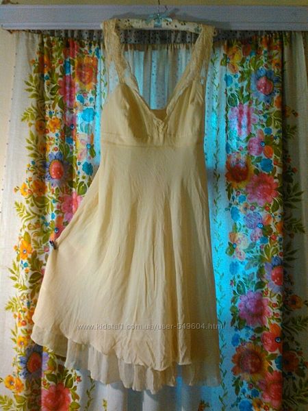 Невесомое,феерическое платьице от известной французской марки La Redoute в цвете нюд из 100% натурального шелка в бельевом стиле.С кружевами,оборками . На подкладке .Указан 14 английский размер. Новое, с бирками.Потайная молния сбоку. Замеры- длина 111см.(+4см-шлейки регулируются), ПОГ в спокойном состоянии примерно 41см( -51-53 см. -это в максимально растянутом виде). Сзади на спинке -пошив резиночкой и открытая спинка дают пластичность ткани. По обрезной линии под грудью в спокойном состоянии полуобхват 40см(макс. до 48 см.). Платье очень женственное, мягко ниспадает по женским выпуклостям). Сделают романтичным образ даме из обьемами М-Л. Нежность всегда в моде! Всем Любви и Красоты!Другие объявления продавца