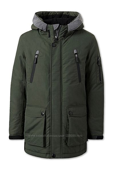 Зимняя модная теплая подростковая парка для мальчика C&A Германия р.,140,,158,,.Плотная верхняя ткань,внутри до середины и капюшон флисовая подкладка,внутри карман с вырезом для наушников. Рукава регулируються липучками.Больше безопасности благодаря отражающим элементам.Качество отличное.Замеры:
