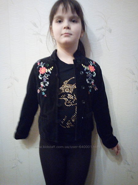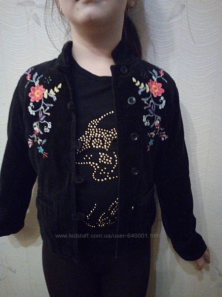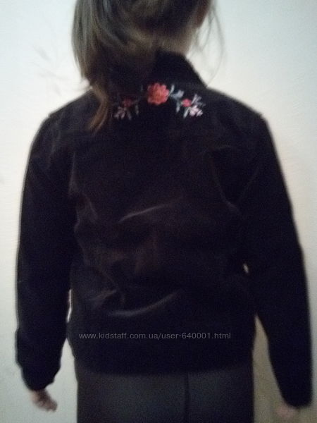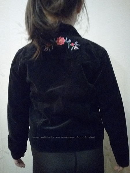 Куртка весенняя выполнена из велюрового материала ,спереди и сзади вышивка в виде цветов ,воротник стойка ,подкладка хлопок ,на возраст 7-8 летЗамеры полуобхват в груди 34 см,длина изделия 44 см,длина рукава45 см ,плечи 28 смДругие объявления продавца