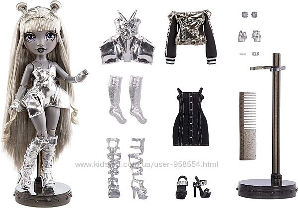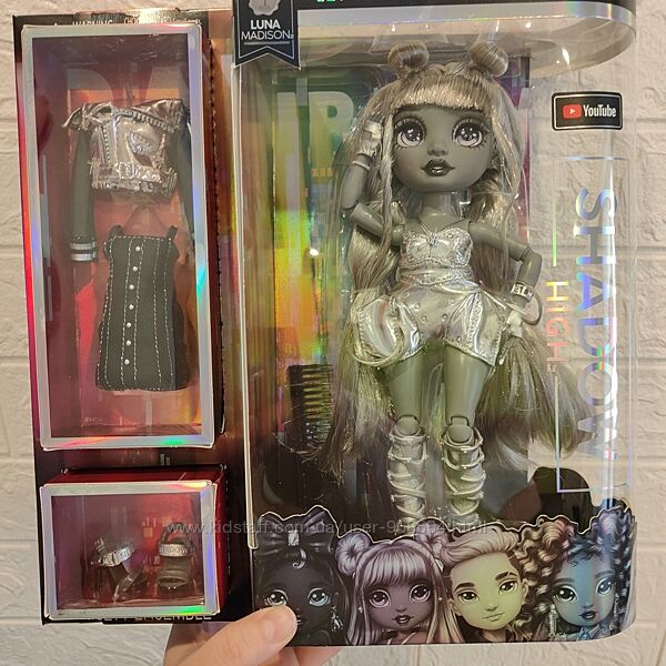 Rainbow High Shadow Series 1 Luna Madison- Grayscale Fashion Doll. Rainbow High официально встретила своего соперника. Shadow High устала от того, что Rainbow High выигрывает (и манипулирует) всем. В этом году Shadow High больше не будет школой искусств, скрытой в тени. Здесь талант непоколебим, а творчество не имеет себе равных. Ожидайте неожиданностей от учеников школы изящных искусств Shadow High. Эти ученики могут преуспевать в тени, но они всегда показывают свое истинное лицо. Представляем ослепительную Luna Madison. Луна Медисон имеет уникальный дизайн и с ног до головы одета в в серый металлик. У нее великолепные детализированные черты лица, красивые прямые волосы с двумя пучками, длинные настоящие ресницы и стеклянные глаза. В Шедоу Хай, элитной школе искусств, у всех учеников есть школьный Фокус, который изображен на упаковке и в анимационном сериале. Фокус Луны — кино. Особенности:У кукол невероятные стеклянные глаза с «настоящими» ресницами.Длинные роскошные волосы можно расчесывать и создавать новые прически.2 набора одежды для куколки: выберите, какой из них тебе больше нравится сегодня.У кукол есть точки артикуляции: колени, локти и запястья.Коллекционная подарочная упаковка: Так как Шедоу Хай является школой-конкурентом Rainbow High, их красивая упаковка отражает Радужную Школу, но куклы находятся в крайнем правом углу, а серый цвет заменил цвета радуги. Отлично подходит для подарка!