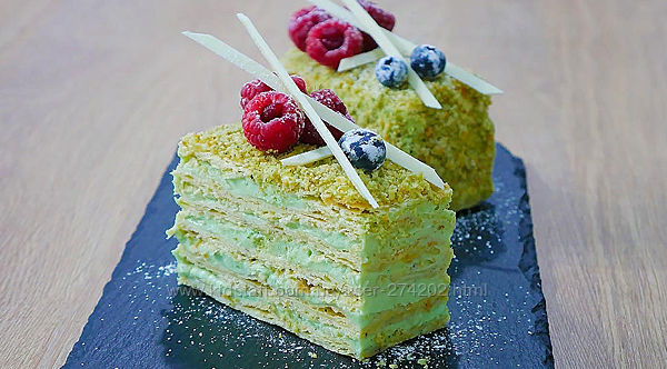 НАПОЛЕОН С ФИСТАШКОВЫМ КРЕМОМ И СВЕЖИМИ ЯГОДАМИ
