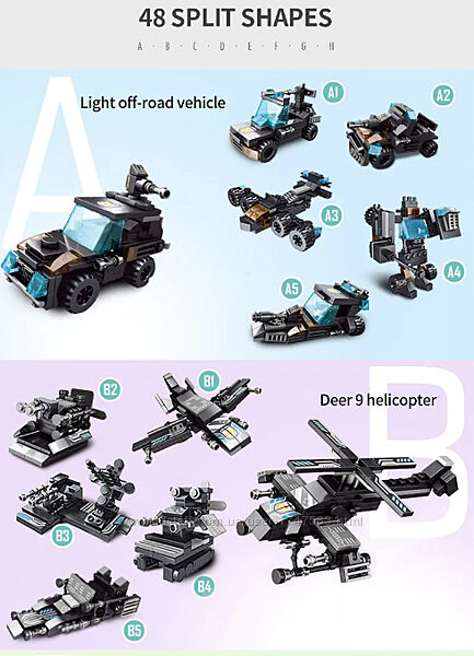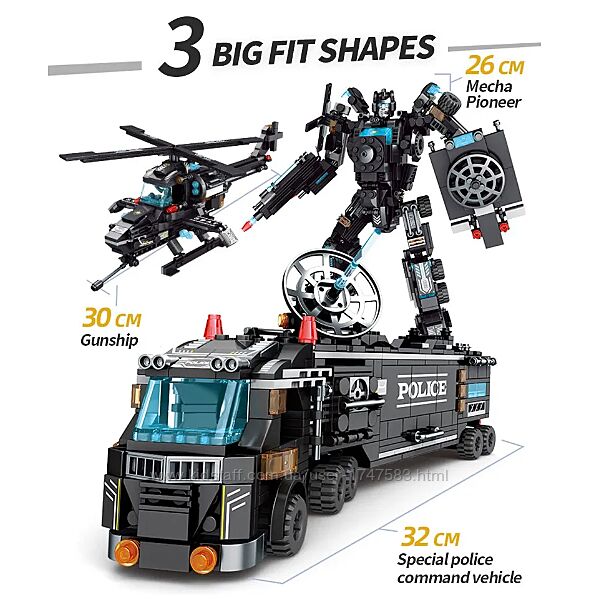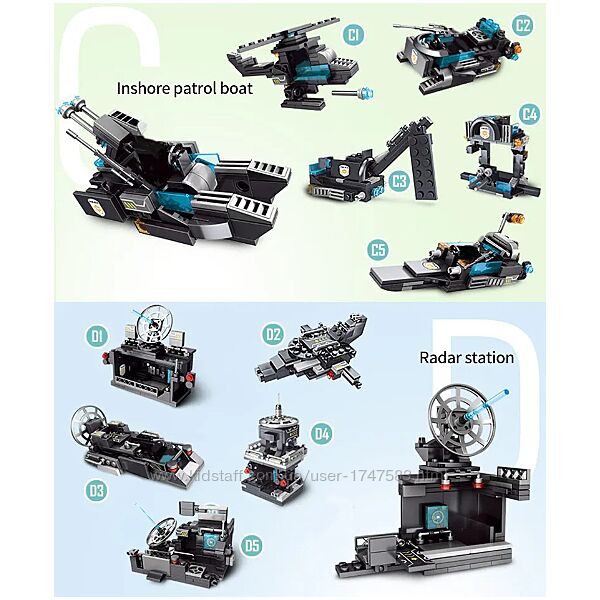 Продається в пакеті.Це класна серія блоків міської поліції з 1022 будівельними кубиками, набір містить вантажівку мобільного командного центру та штаб поліції, гідролітак, патрульний катер, поліцейську машину, тюремний фургон, броньовану машину, гелікоптер, поліцейську станцію, поліцейський пост і т.д.Вантажівки мобільного командного центру міської поліції оснащені артилерією, радаром, командними кімнатами, ракетними установками, тюремними камерами та іншими цікавими поліцейськими функціями! Поліцейські станції, вертольоти, крейсери, ракетні машини, поліцейські позашляховики, артилерійські машини, патрульні катери, фрегати та запчастини. Ця 11-дюймова вантажівка мобільного командного центру робить всю модель ще більш вражаючою. Діти можуть підтримувати громадський мир і захищати справедливість за допомогою рольових ігор!