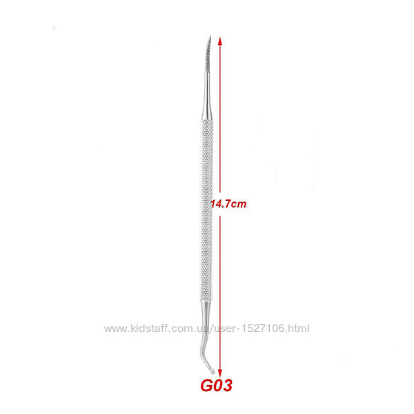 Цельнометаллическая двусторонняя педикюрная кюретка из нержавеющей стали (17Х12) для обработки вросших ногтей. С одной стороны рабочая часть имеет вид плоской изогнутой лопатки, с другой – тонкий наконечник в виде миниатюрной полусферы. Рабочие части инструмента достаточно тонкие, при этом не царапают поверхность ногтя и позволяют добираться до самых труднодоступных мест. При использовании строго по назначению лопатки (пушеры), кюретки и педикюрные пилки практически не подвержены износу. Отправка заказов: каждый день Пн-Пт.Компания-перевозчик: Новая почта.