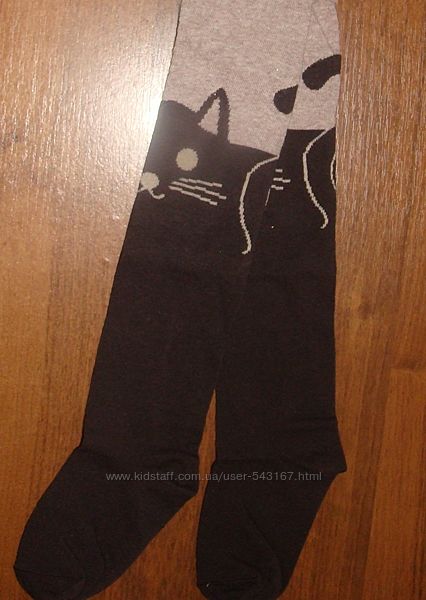 Кидстеп р. 104-110см. Замеры: Шаговой шов 33см. От пояса до средины пяточки 53см. От пояса до пальчиков 64см. Кошечка имитация гольфов (низ коричневый верх капучино)