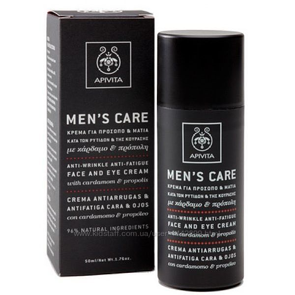 APIVITA КРЕМ ДЛЯ МУЖЧИН ПРОТИВ МОРЩИН ДЛЯ ЛИЦА И ОБЛАСТИ ВОКРУГ ГЛАЗ С КАРДАМОНОМ И ПРОПОЛИСОМ, ОБЪЁМ 50 млКрем против морщин и усталости для лица и кожи вокруг глаз с кардамоном и прополисомЧем старше вы становитесь, тем больше витаминов и минералов требуется вашей коже для сохранения сияния и безупречной гладкости. В продукции греческой компании Apivita содержится огромный запас природных микроэлементов, которые продлят вашу молодость.Крем против морщин и усталости Apivita Men Men´s Care Anti-Wrinkle Anti-Fatigue Face And Eye Cream With Cardamom & Propolis собрал огромное количество положительных отзывов среди мужчин разных стран мира. Это природный источник красоты и здоровья для сильной половины человечества. В нем содержится экстракт прополиса и кардамона, которые эффективно защищают кожу от воздействия внешних радикалов, солнечных лучей и других экологических факторов, а также насыщают дерму витаминами, улучшающими скорость обновления клеток. В состав продукта входит экстракт бука, активные компоненты которого уменьшают глубину морщин и устраняют темные круги под глазами.