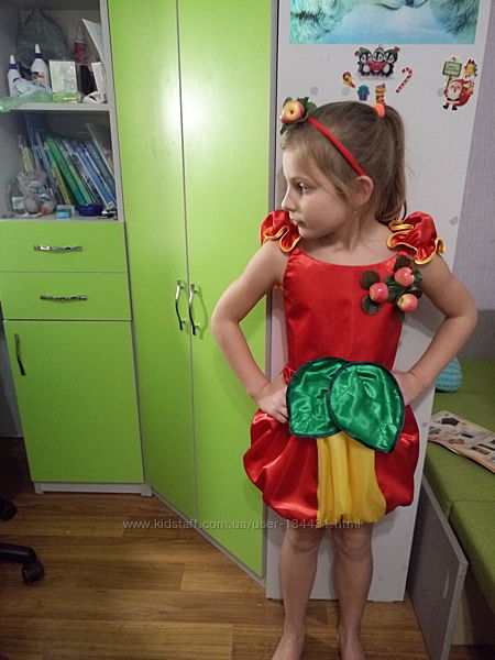 Продажа карнавальных костюмов,пошив под заказ.У нас в ассортименте есть всевозможные персонажи из сказочных героев, животных и птиц и много других необычных персонажей.ЯБЛОКО ( платье , обруч)-450 грн.