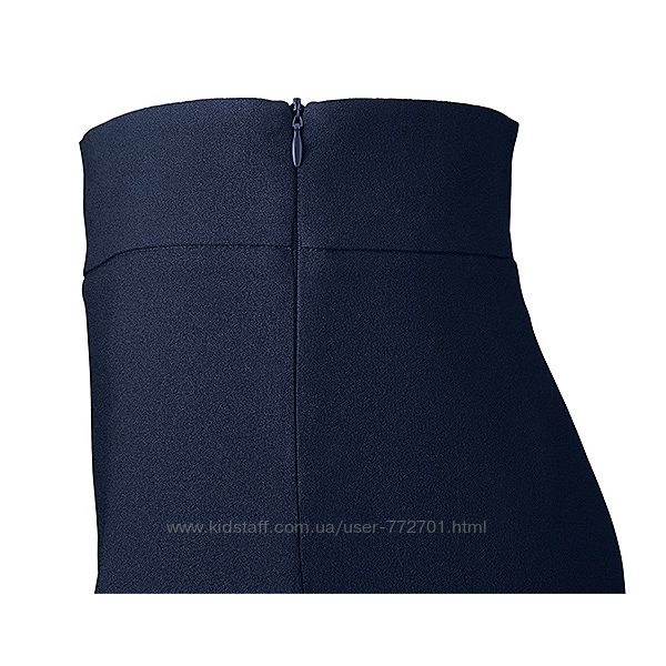 Пояс брюк высокого кроя, а молния скрыта в боковом шве.