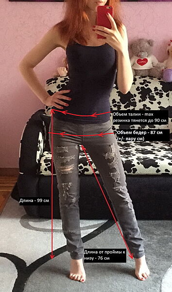 Длина штанины середины бедра (от проймы к низу) - 76 см