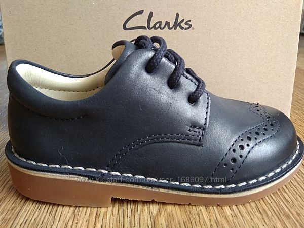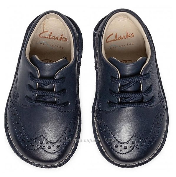 Верх из темно-синей натуральной кожи с традиционной перфорированной отделкой придает истинно mini-me стиль и хорошо сочетается с различными нарядами. Легкие и гибкие, эти ботинки имеют прочную и устойчивую подошву, обеспечивают комфорт и поддержку благодаря мягкому отвороту, кожаной подкладке и использованию Clarks технологии Air Spring FX (специальная конструкция Clarks в каблуке для свежести ног, что также смягчает каждый шаг).