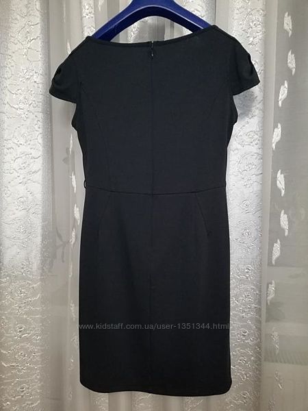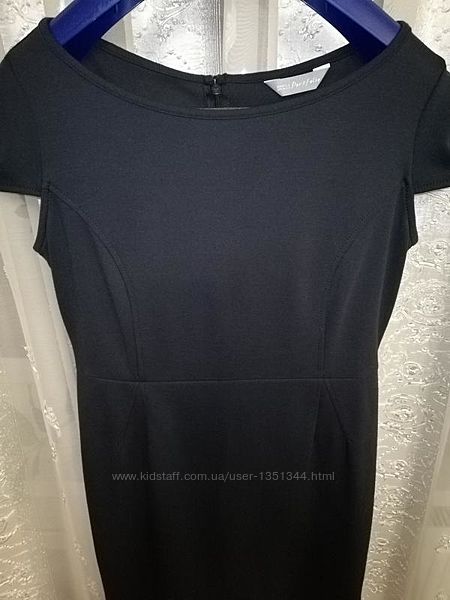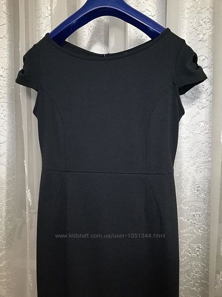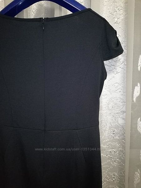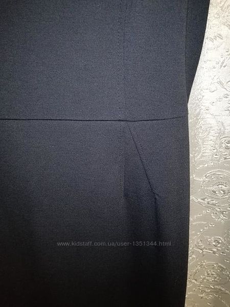 Изящное трикотажное деловое качественное платье темно-синего оттенка с защипами и с красивыми рукавами. Без подкладки.Ткань немного тянется, хорошо держит форму, приятная на ощупь, отличного качества.