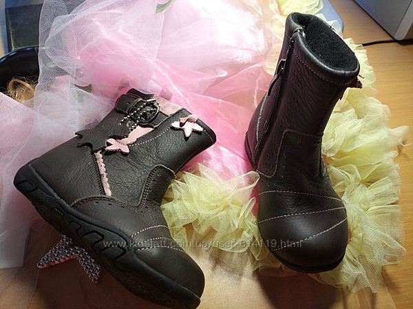 Красивые новые деми ботиночки из натуральной кожи от Happy bee. Внутри утеплены, стелька кожа, супинатор. Застёгиваются на змейку. Шоколадно-розовая гамма. Лёгкие и удобные. По стельке 15.5смПредоплата/наложка,высылаю уп,нп