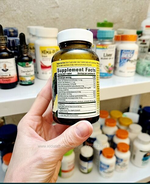 Для укрепления детской нервной системы, поддержки мыслительной деятельности и спокойствия. Это не просто крутой комплекс витаминов групп В. Это сырые цельнопищевые витамины с очень грамотным и сбалансированным составом. В составе комплекса полный набор Б-шек (В1, В2, В3, В6, В9, В12, биотин, пантотеновая кислота), а также цинк (работающий на иммунитет), хром ( для правильного уровня сахара в крови), экстракт мелиссы (для снятия напряжения), L-тианин (аминокислота, которая способствует улучшению умственных способностей, повышает настроение и сопротивляемость стрессу. Он начинает действовать примерно через 30 минут после поступления в организм и действие его длится около 5 часов). Все дозировки приемлемые и не превышают 100% от суточной нормы потребления. Витамины выпускаются в форме таблеток, конечно не все дети их смогут проглотить, хоть они и имеют небольшой размер.