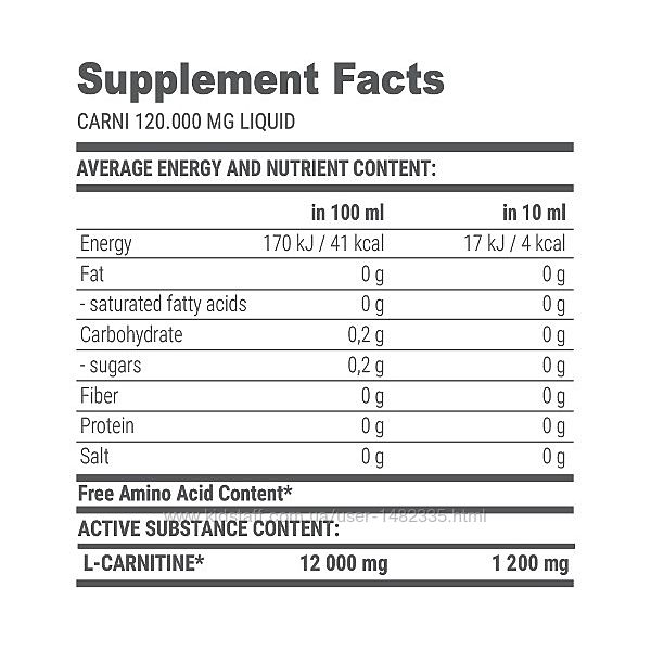 Состав Carni Liquid 120000 mg Extrifit (1 порция = 10 мл):
