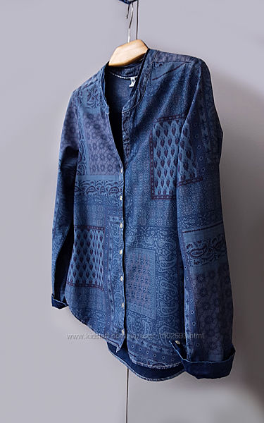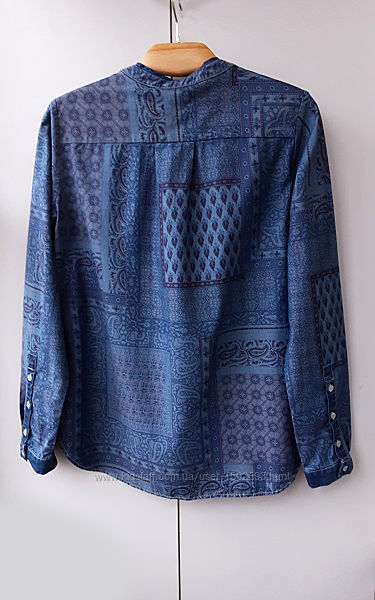 Стильная свободная рубашка с удлинением по спинке,от известного германского бренда Seidenshicker .Модель с длинным рукавом,воротник стоечка.Декорирована оригинальным принтом.Идеально подойдёт к классическим брюкам,к обычным джинсам,шортам и юбкам.