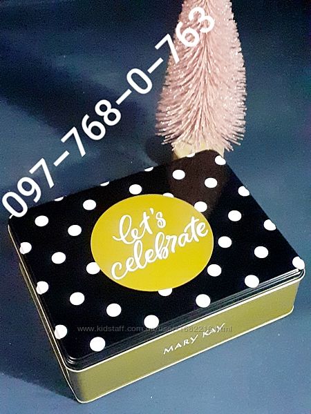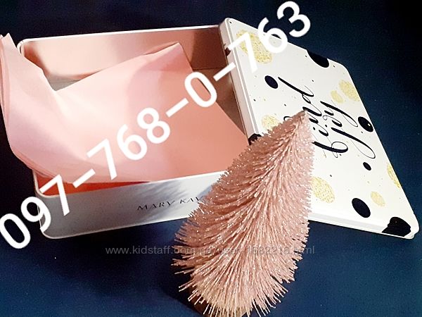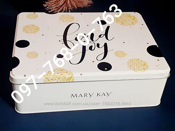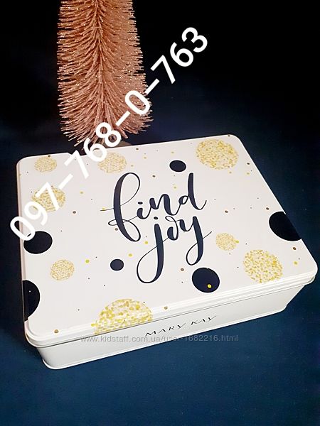 праздничный бьюти-бокс от Мери Кей. выполнен в экотренде - из крепкого жестяного материала и предназначен для многоразового пользования. надпись Find joy - Найди радость.розмер бокса : 23 × 17,8 × 7,2 см