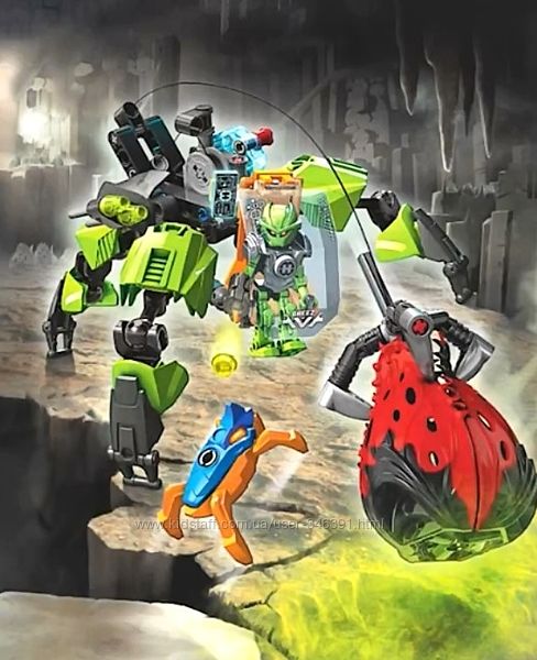 Прыгай, Бриз! Кислотные коконы делают воздух в подземной пещере токсичным. Мчись на "блошиной" мегамашине и отправляйся на исследование подземелий. Используй трос и крюк для захвата, чтобы безопасно передвигаться над ядовитой местностью. Стреляй двойными маневренными ракетами из своего шутера, чтобы отразить атаки вылупливающихся прыгунов. Ты должен обнаружить и уничтожить этот кокон, чтобы избавиться от токсичного тумана! В набор входит мини-робот БРИЗ с оружием и аксессуарами.