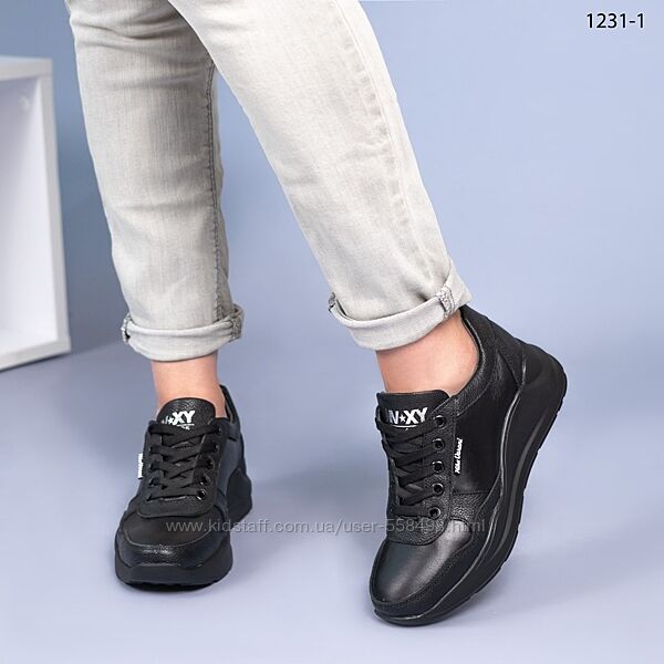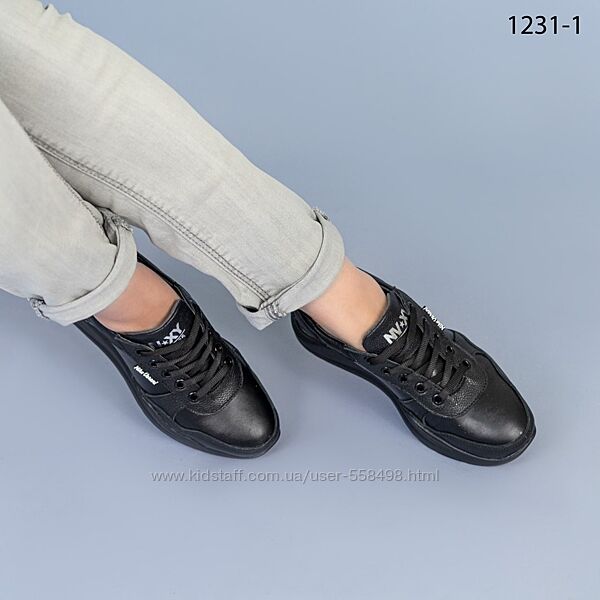 Подробное описание: Жіночі шкіряні кросівки чорного кольору