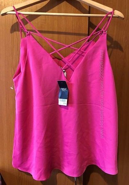 Блуза Next , размера 14Длина спереди от окончания бретелек 55 см, ПОГ - 51 см. Д лина от середины выреза сзади по середине 39 см, длина сзади от окончания бретелек 56 см.