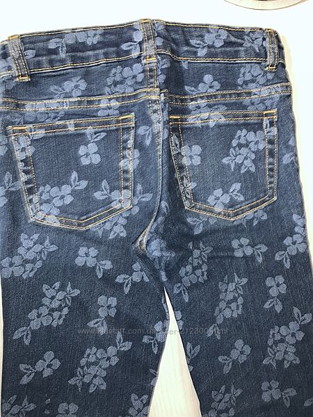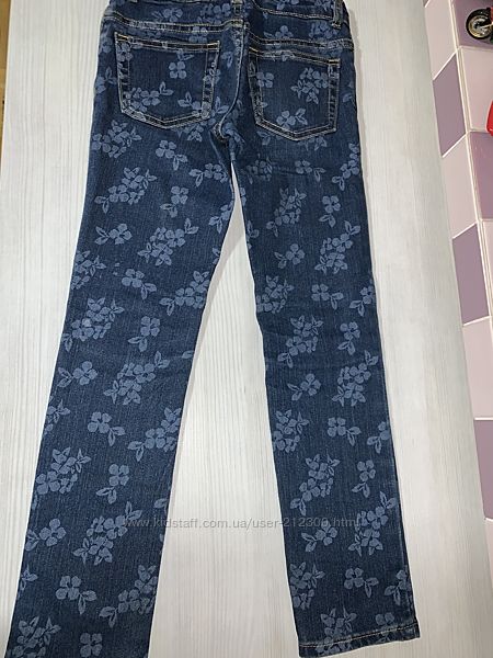 Джинсы с цветочным принтом, по талии регулируются резинкой, в отличном состоянии.
